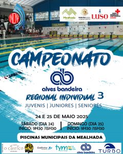 O Campeonato Regional ALVES BANDEIRA – Campeonato Regional Individual 3 encerrou a sua terceira e última jornada da época 2024/2025 com uma competição intensa nas Piscinas Municipais da Mealhada, nos dias 24 e 25 de maio de 2025. Esta prova contou com a presença de 17 clubes e 231 atletas, marcando o fim de um ciclo competitivo que percorreu três jornadas na Mealhada.